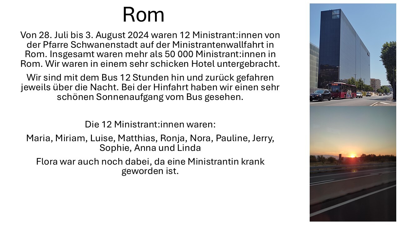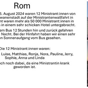 Den Bericht von der MINI-Wallfahrt nach Rom 2024 (siehe unten) haben die jüngeren Ministrantinnen gerne gehört - in ein paar Jahren können sie vielleicht auch dabei sein.