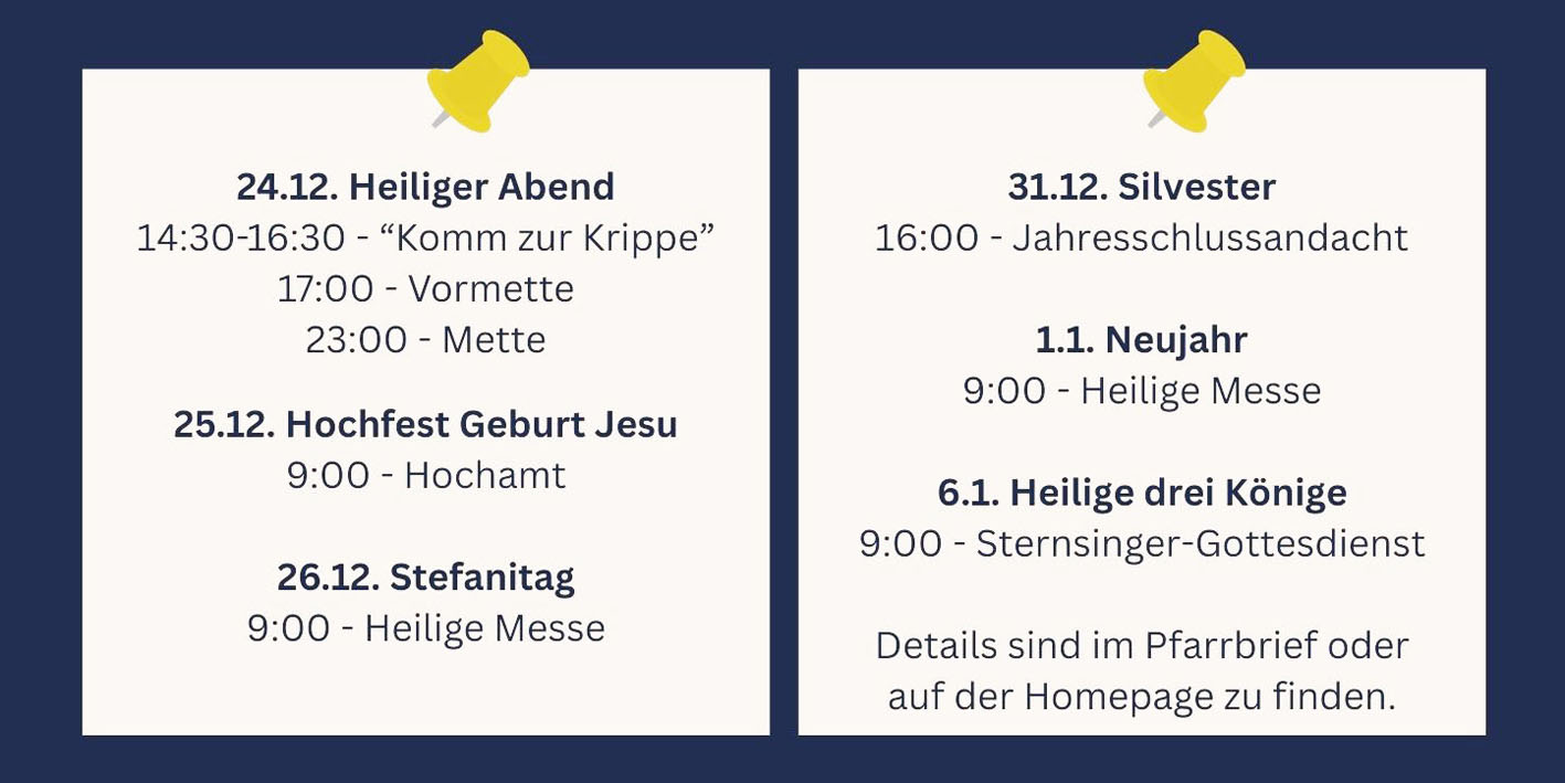 Auch heuer findet am 24. Dezember 2025 wieder die offene Kriche von 14:30 bis 16:30 für alle Kinder und Familien mit Musik, Stationenbetrieb uvm statt. Ihr seid eingeladen...