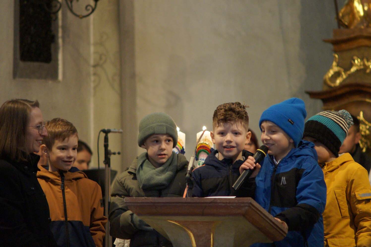 Am 8.02.2026 fand der erste Höhepunkt in dieser Vorbereitungszeit statt. Die Kinder stellten sich im Rahmen des Sonntag-Gottesdienstes der Pfarrgemeinde vor. Mutig präsentierten sie sich gemeinsam mit ihren Tischmüttern der Pfarrgemeinde.