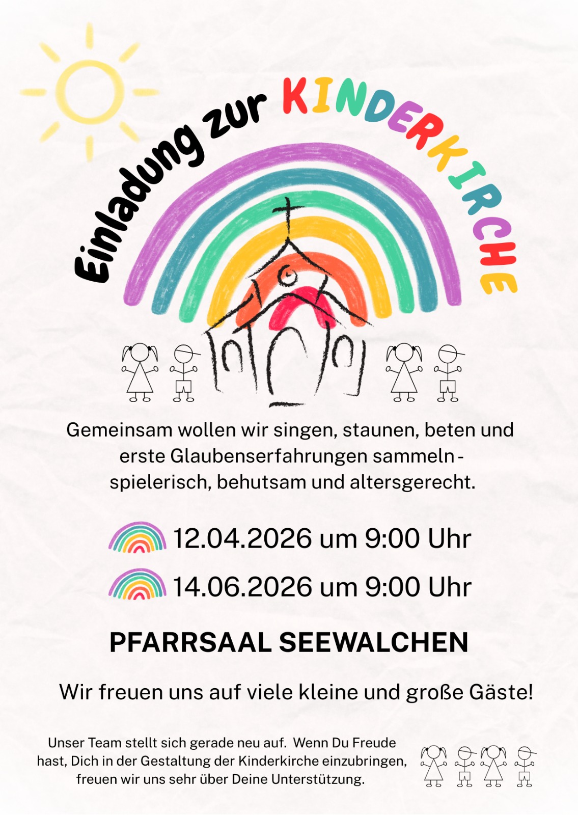 Herzliche Einladung zur Kinderkirche im Pfarrsaal am