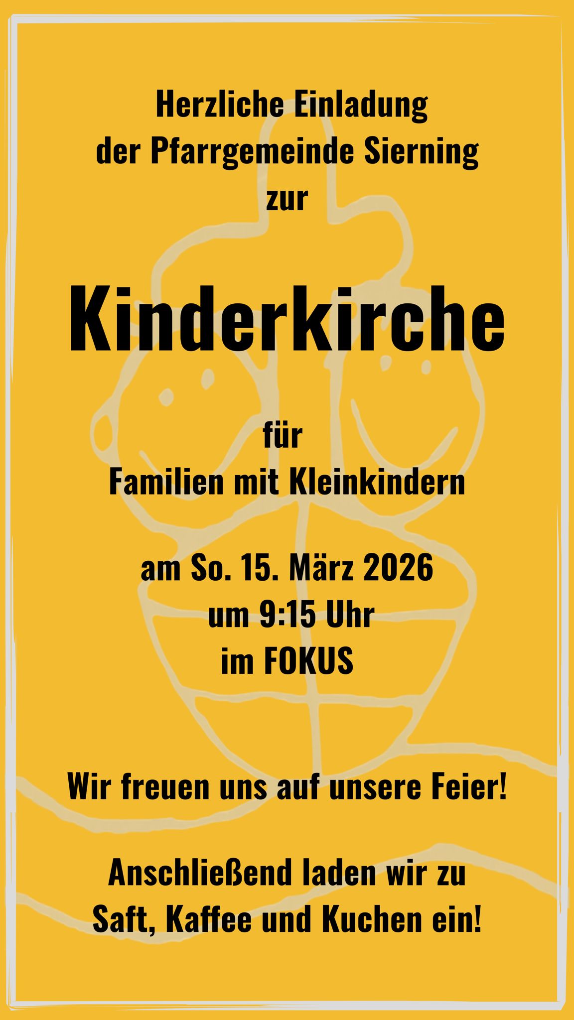 Kinderkirche am Sonntag, 15. März 2026 Beginn 9:15 Uhr - im Pfarrheim FOKUS Herzliche Einladung an alle Familien mit Kleinkindern ! Einladung