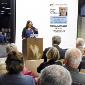 Zahlreiche Gäste folgten der Einladung des Kath. Bildungswerkes, verfolgten die Erörterungen von Herrn Prof. Dr. Zulehner und traten in eine rege Diskussion mit ihm.