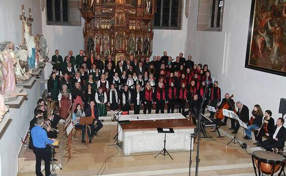 Neben den einzelnen Stücken der Chöre und des Ensembles wurden über 10 Lieder als gemeinsamer Chor gesungen. Der große Klangkörper vermochte besonders zu begeistern und steigerte sich bis zum Sanktus und Benedictus.
