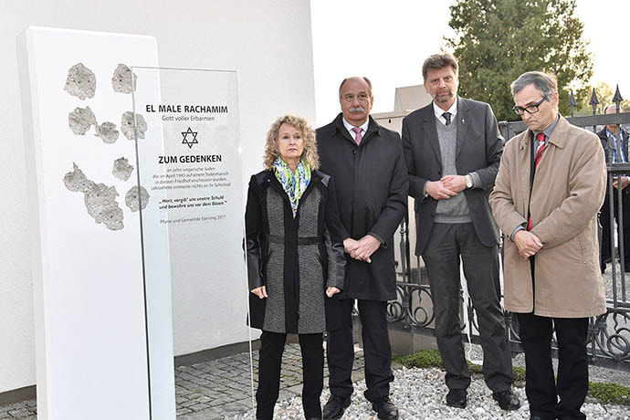 Beim Friedhofeingang wurde ein Denkmal und Mahnmal für die ungarischen Juden enthüllt, die hier am 19. Apri 1945 erschossen wurden.