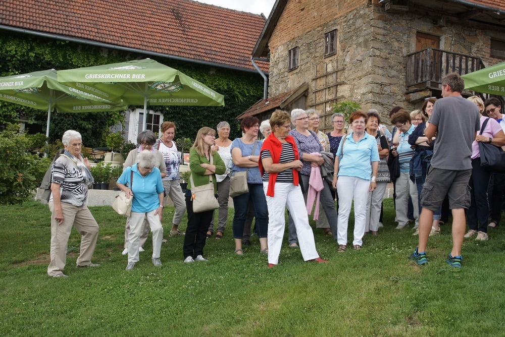 Nach dem Rundgang gab es auf der Terrasse die Möglichkeit für Kaffee und Kuchen und der Blick auf das Eferdinger Becken sowie auf den wunderbaren Garten ließ Dankbarkeit im Herzen aufkommen.