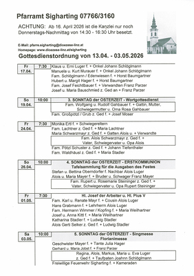 Gottesdienstordnung und Verlautbarungen