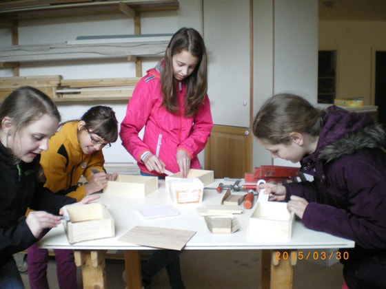 Da nur 4 Mädchen waren, durfte jede eine Kassa aus Holz anfertigen, die dann beim Sternsingen verwendet werden. Die Mädchen hatten sehr viel Spaß!