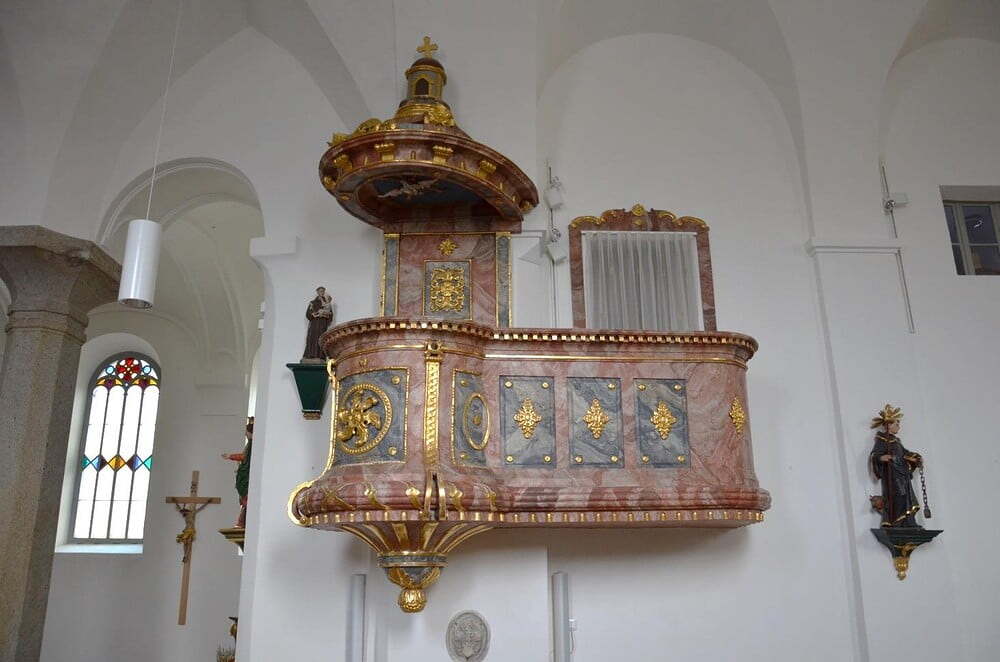 Aus 1785 ist die erste Kanzel überliefert. Schon nach drei Jahren hatte sie ausgedient, denn 1788 wurde die neue Kanzel samt Kuppel und Tür, für die ein Loch in die Kirchenmauer geschlagen werden musste, erstellt. 1962 wurde die Kanzel restauriert, welche drei Jahre später infolge der modernen Technik ausgedient hatte.