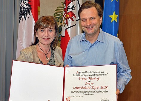 An der Kirchturmspitze der Dombaumeister Matthäus Schlager.