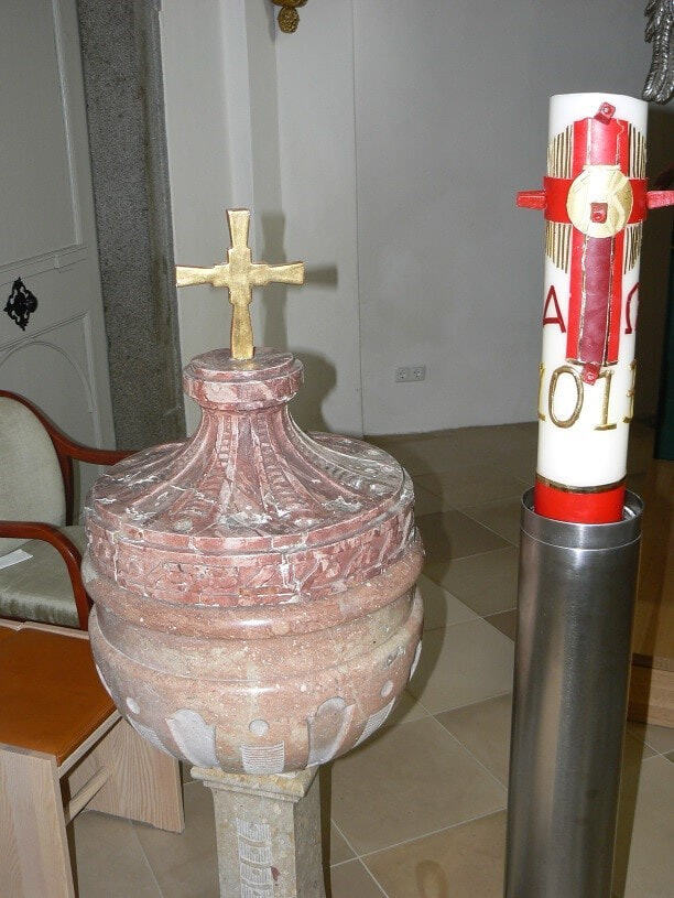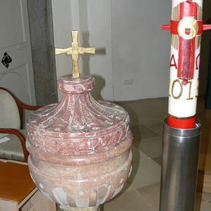 1786 kam der marmorne Taufstein aus der Pfarrkirche St. Martin nach Sigharting und erhielt seinen jetzigen Platz im Rahmen der Neugestaltung des Altarraumes.
