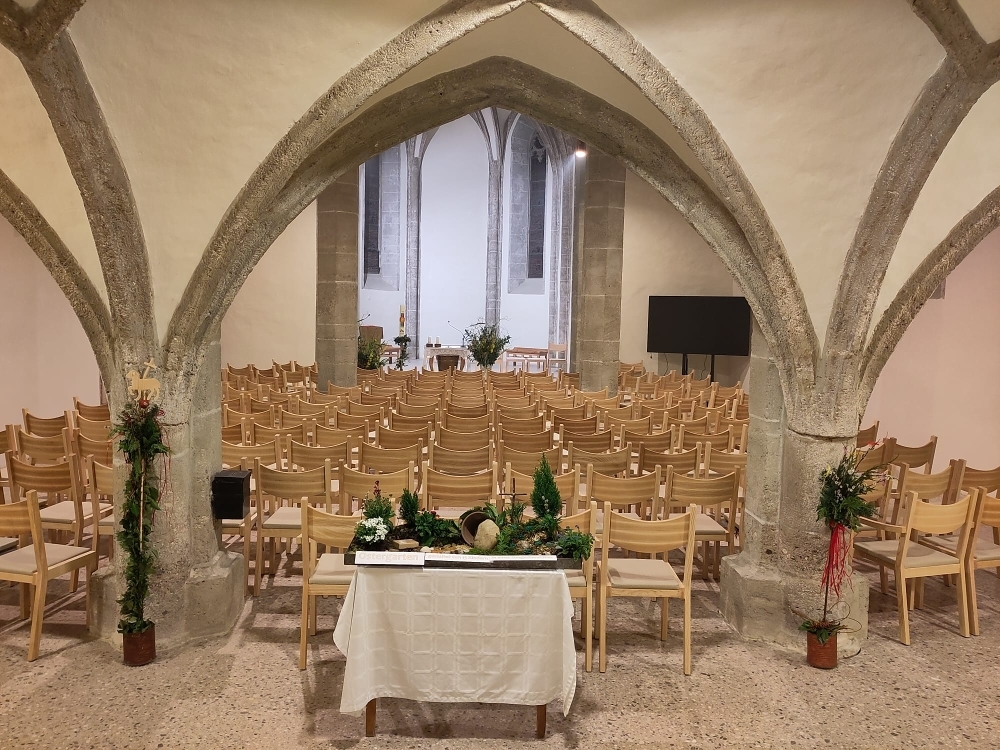 Es gibt zwar noch viel zu tun - die künstlerische Ausgestaltung fehlt noch, der Altarraum ist noch nicht vollständig und der Seiteneingang noch nicht fertig - aber wir freuen uns ab nun unsere Gottesdienste in der Pfarrkirche mit euch zu feiern.