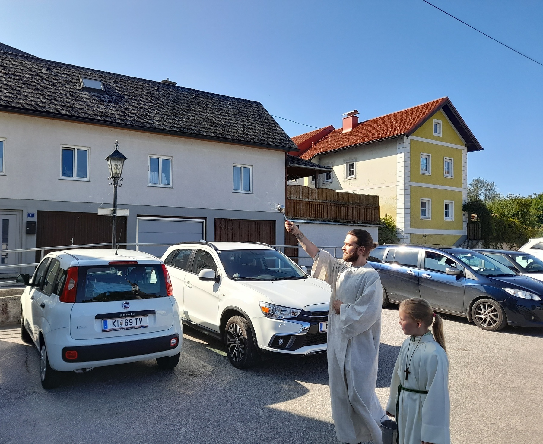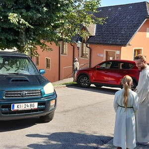 Vom Rollstuhl über den Tretroller bis zu den Autos; am Christophorussonntag wurden die Fahrzeuge gesegnet