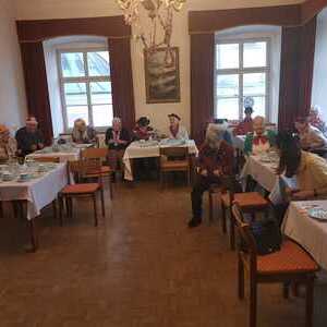 Musik, Bewegungsspiele im Sitzen, lustige Geschichten, Kaffee, Kuchen und Krapfen zur Stärkung - das Programm war bunt gemischt. Und dazwischen gabs auch Zeit zum Plaudern. Ein kurzweiliger Nachmittag mit vielen fröhlichen Gesichtern.