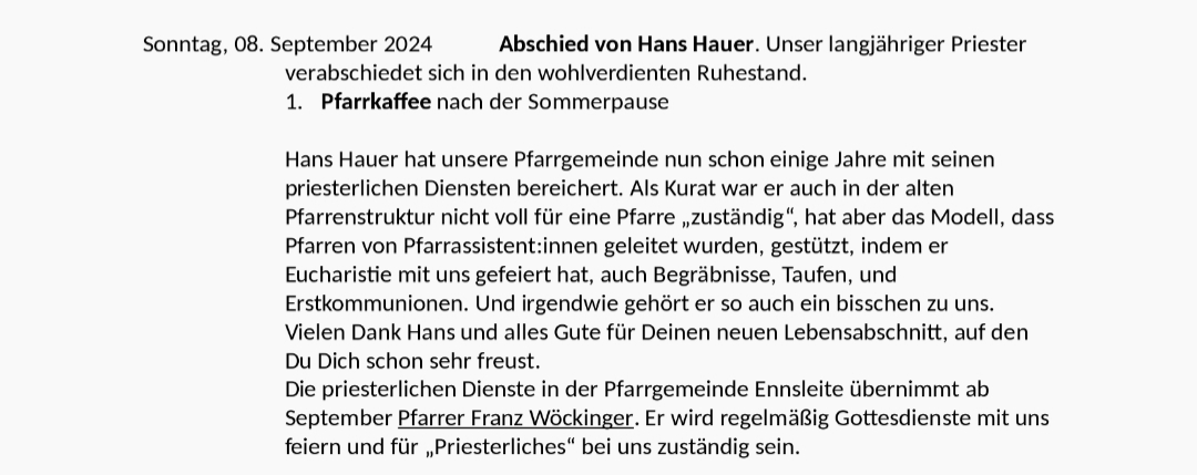 Pfarrwallfahrt am 7. September 2024
