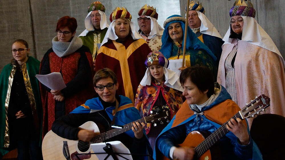 Sie sangen, um im Rahmen der Dreikönigsaktion Spenden für Projekte auf den Philippen (Nahrung sichert Leben, Schutz für Kinder) zu sammeln und Segenswünsche zu überbringen.