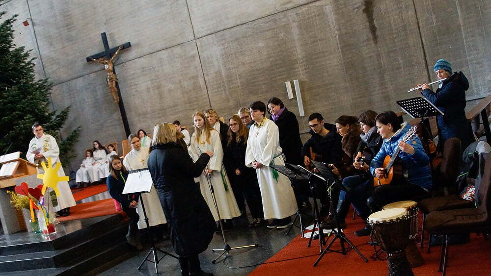 Gesegnet wurden die Neugetauften und kleinen Kinder um sie bewusst unter den Schutz und Segen Gottes zu stellen. Eine Kindergartengruppe (Leitung: Tanja Kickinger) und der Chor mit Musikern unter der Leitung von Heidi Freilinger gestalteten musikalisch den Gottesdienst. Anschließend lud der PGR alle zum Pfarrkaffee auf ein gemütliches Beisammensein ins Pfarrzentrum ein.