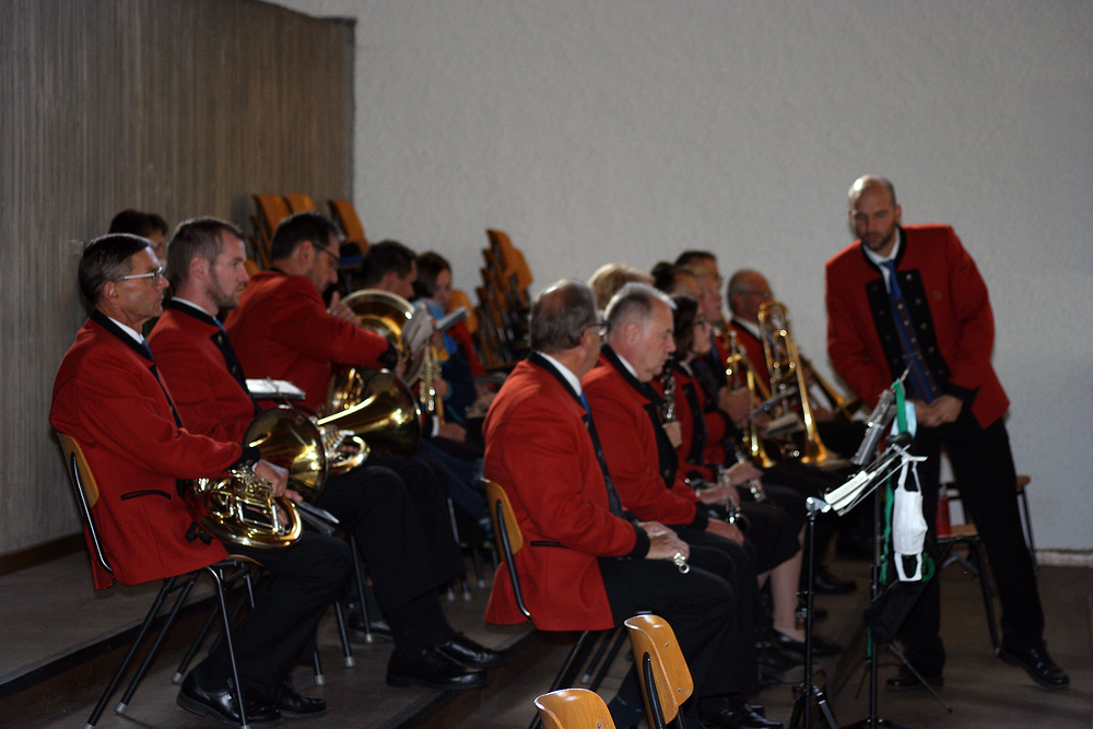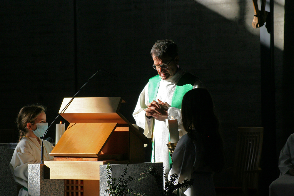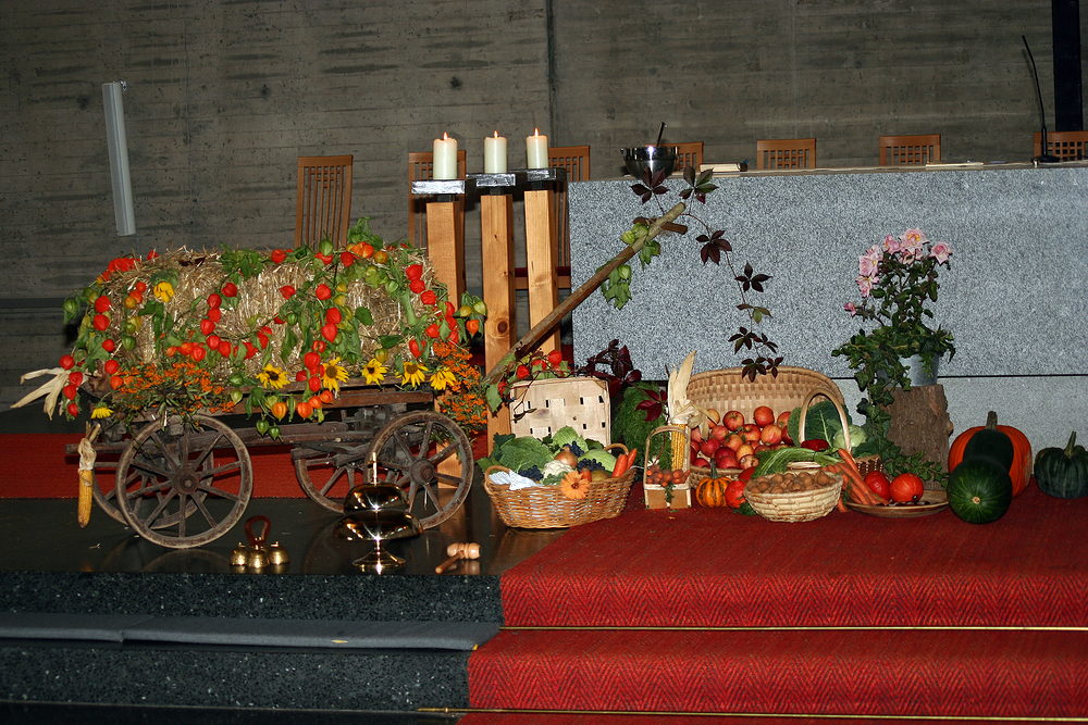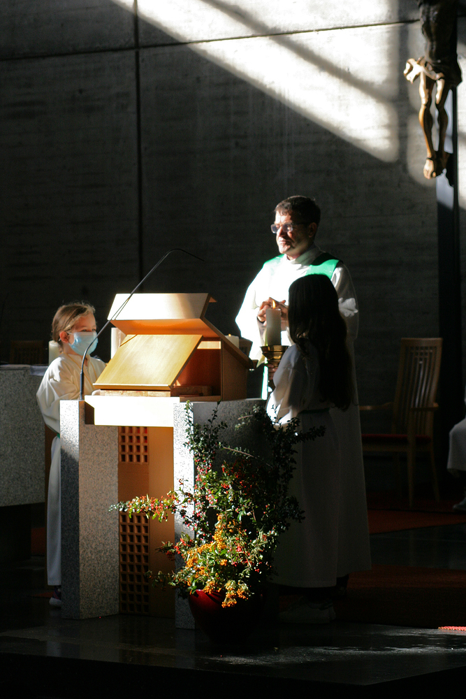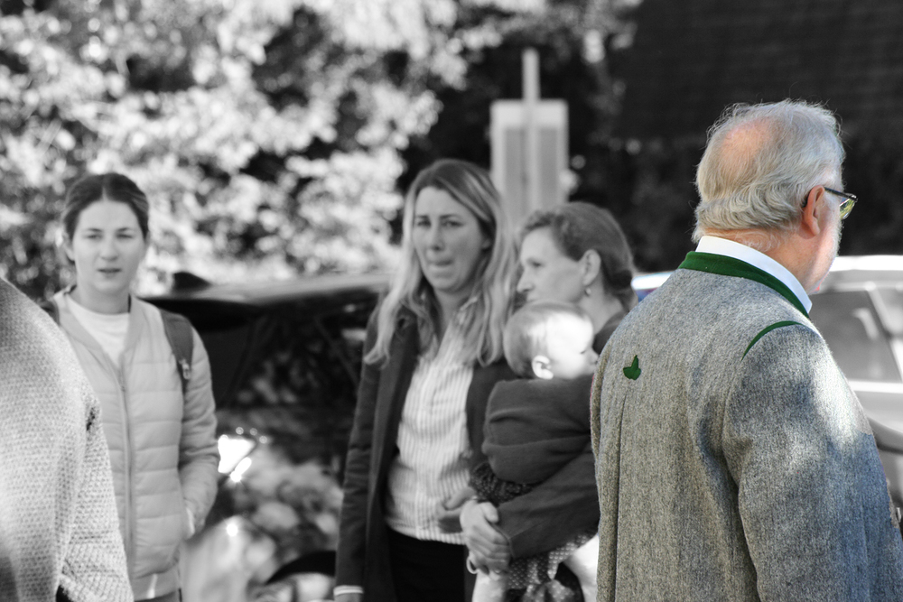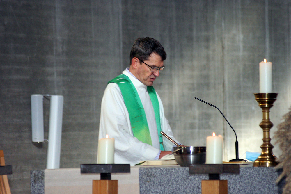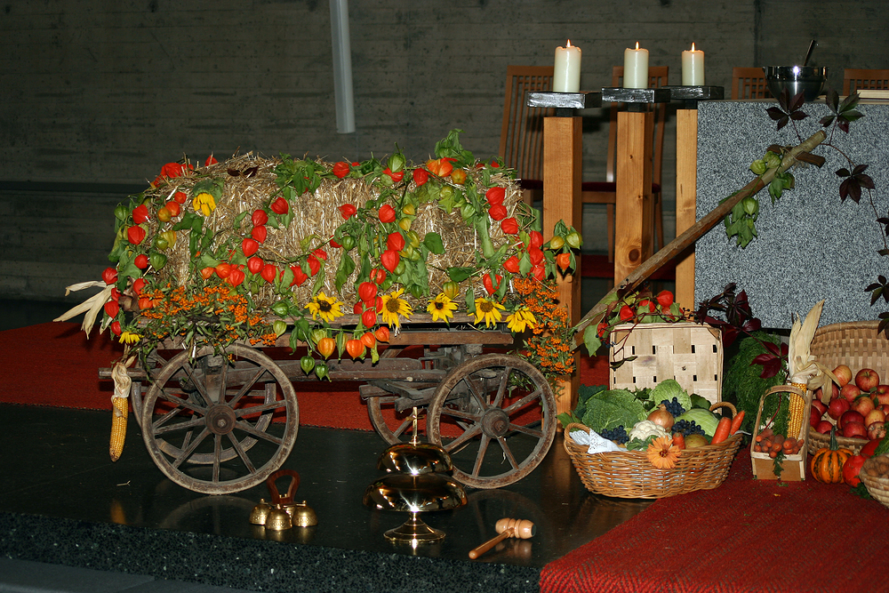 Die Erntekrone zog in die wunderbar geschmückte und bereits gut besuchte Kirche ein und wurde dort gesegnet. Besonderer Dank gilt allen, die das Getreide zur Verfügung gestellt und die Erntekrone gebunen haben, sowie der Musikkapelle Wachtberg, die die Messe musikalisch feierlich umrahmte.
