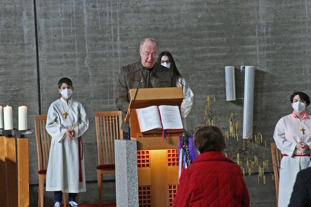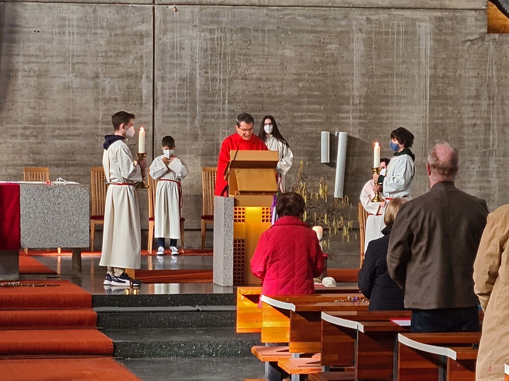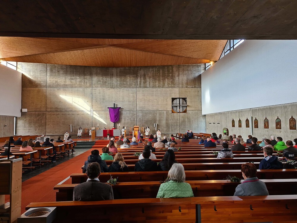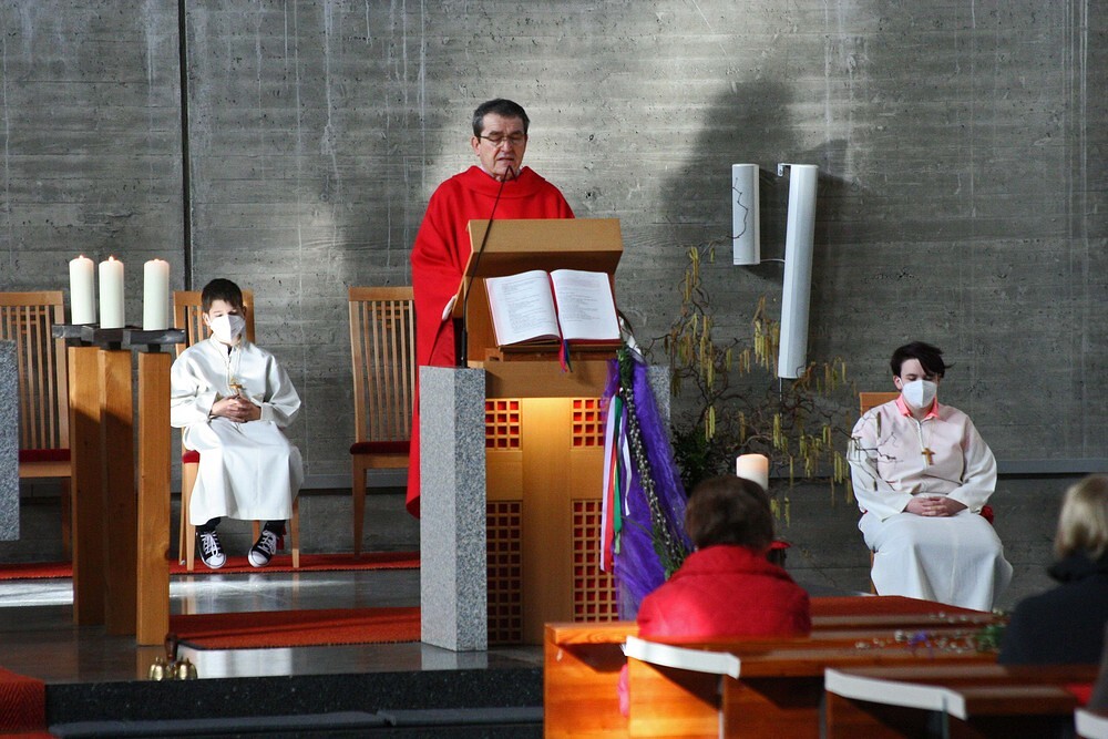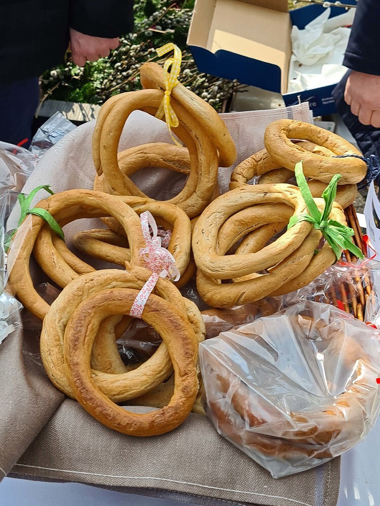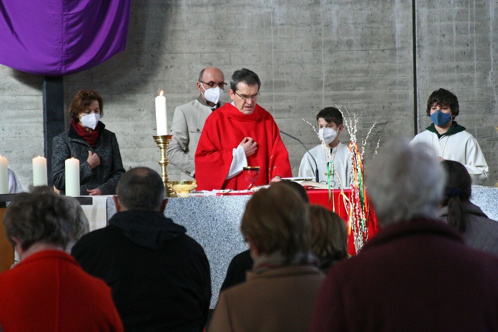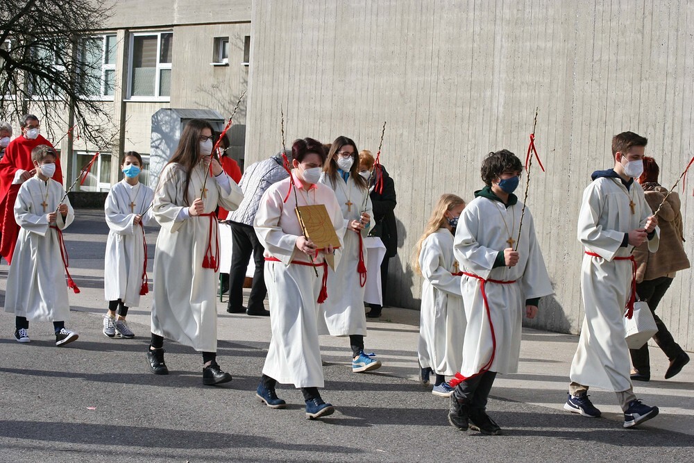 Die in Heimarbeit gebundenen Palmbuschen wurden gemeinsam mit Fastenbeugerl, Osterkerzen und Dekohasen gegen freiwillige Spenden von Elisabeth Mosaner, Veronika Hagen, Gusti Held und Doris Scheidleder bereits am Samstag am Wochenmarkt und am Sonntag am Kirchenplatz angeboten.