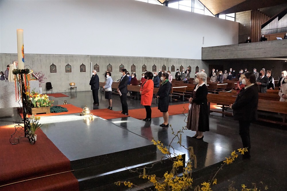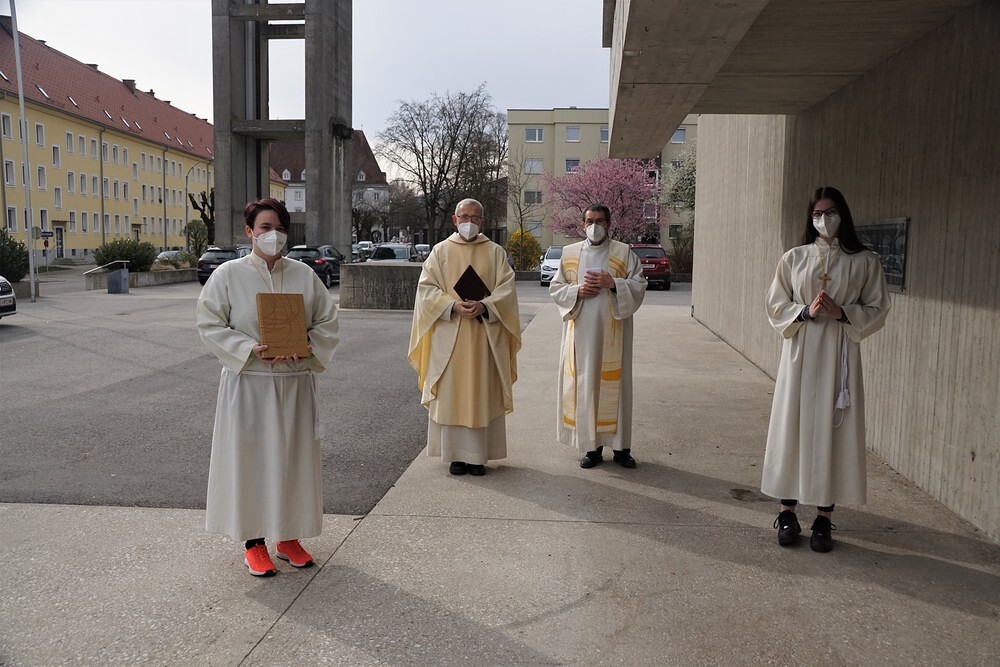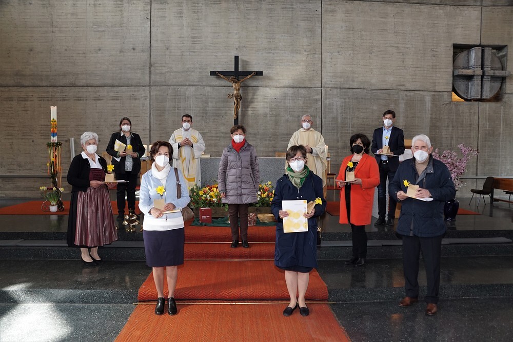 Sieben Personen aus unserer Pfarre haben in den vergangenen 2 Jahren (hat wegen Corona ein wenig länger gedauert) eine Ausbildung der Diözese Linz für Mitglieder eines Seelsorgeteams absolviert. Im Rahmen des Sonntagsgottesdienstes am 11. April 2021 um 9:15 Uhr erfolgte die offizielle Beauftragung durch Bischofsvikar Kan. KonsR Dr. Johann Hintermaier unter Einhaltung aller Corona-Vorschriften.
