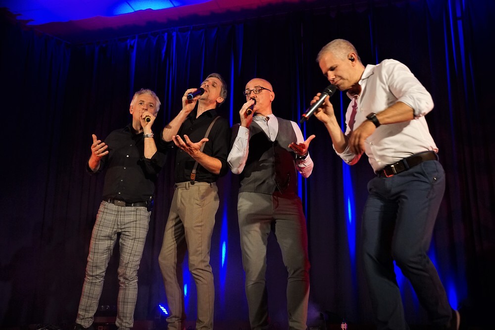 Obwohl DIE VIERKANTER auf der Bühne praktisch kurz vor der „Silbernen“ stehen und auch so manches „Autsch“ schon zwicken könnte, ist die Frage nach der „a cappella-Midlife-Crisis“ völlig unangebracht! Sie bewiesen im neuen Programm genau das Gegenteil und (er)finden sich sozusagen immer wieder neu!