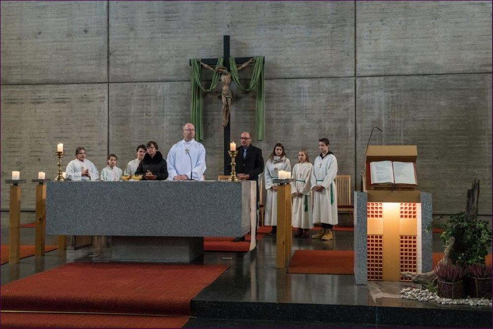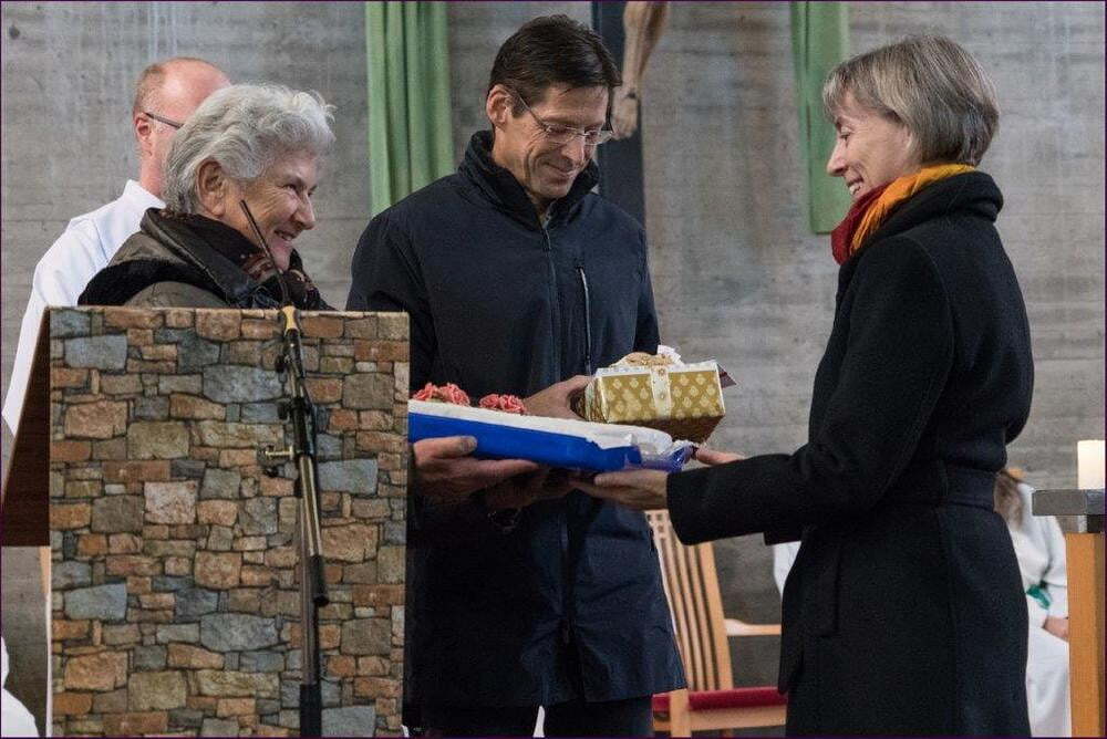 Michael Brantner leitete die Wortgottesfeier, die der Chor musikalisch gestaltete. Besonders erfreulich war die Anwesenheit vom Gründer und langjährigen Chorleiter Claus Frauenberger und von zahlreichen früheren Sängerinnen und Sängern. Heimo Losbichler und Paula Leitner gratulierten und bedankten sich im Namen des PGR und der Pfarrleitung mit Geschenken und einem Jubiläumskuchen für das große Engagement der Sängerinnen und Sänger sowie der Chorleiterin. Im Anschluss wurde im Pfarrsaal bei einer Agape auf das Jubiläum angestoßen und so manches über frühere Zeiten geplaudert.