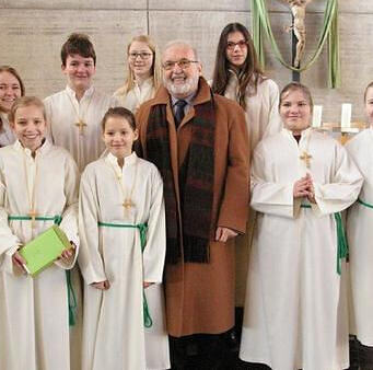 Ein Dankeschön von Pater Thomas und Vertretern sämtlicher pfarrlicher Gruppen an Herrn Josef Riedl für seine langjährige Bereitschaft und Engagement als Mesner.