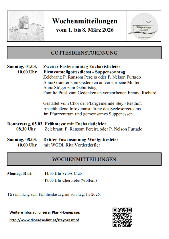 WOCHENMITTEILUNGEN vom 22. Februar bis 8. März 2026
