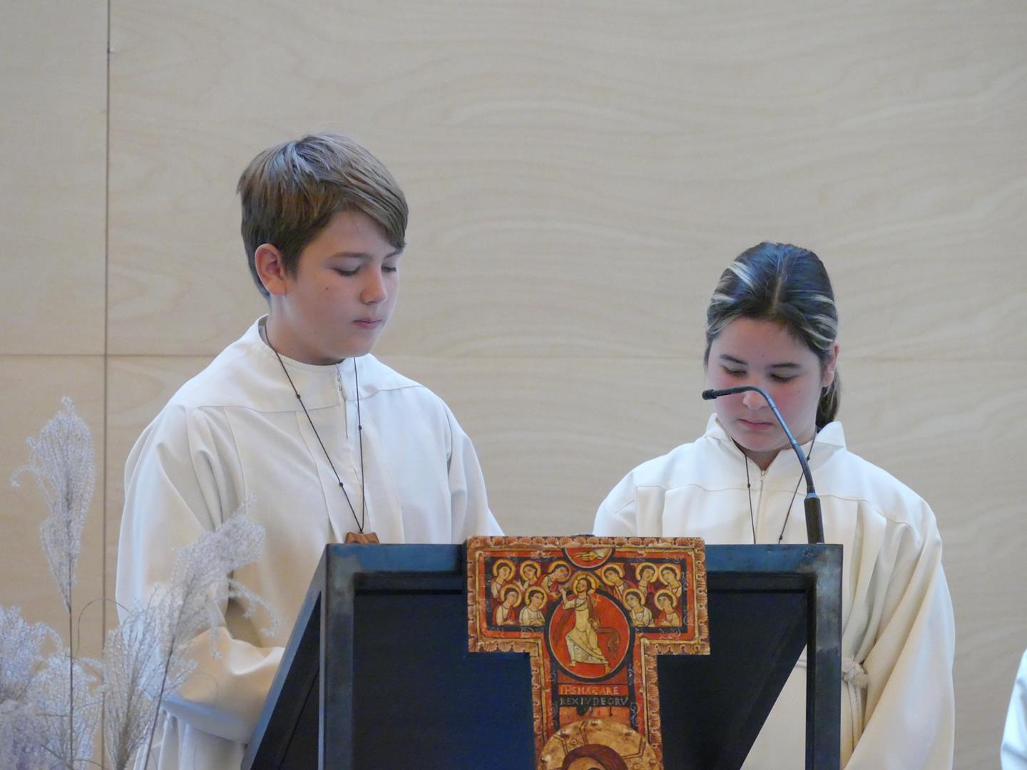 Mattea und Lucas, zwei langgediente Ministranten, wurden heute verabschiedet. Pater Nelson und Rita dankten ihnen für die Zeit die sie unsere Pfarrer und Wortgottesdienstleiter unterstützt haben und es gab natürlich auch, wie sich das gehört, eine Abfertigung.