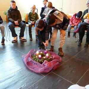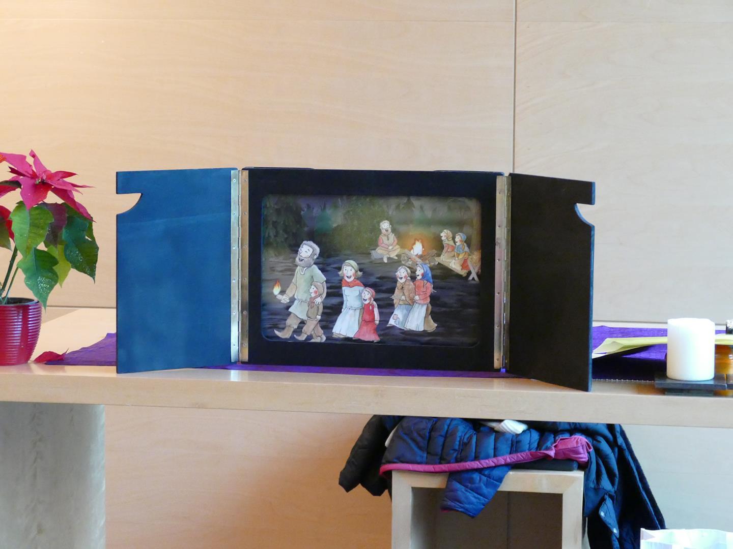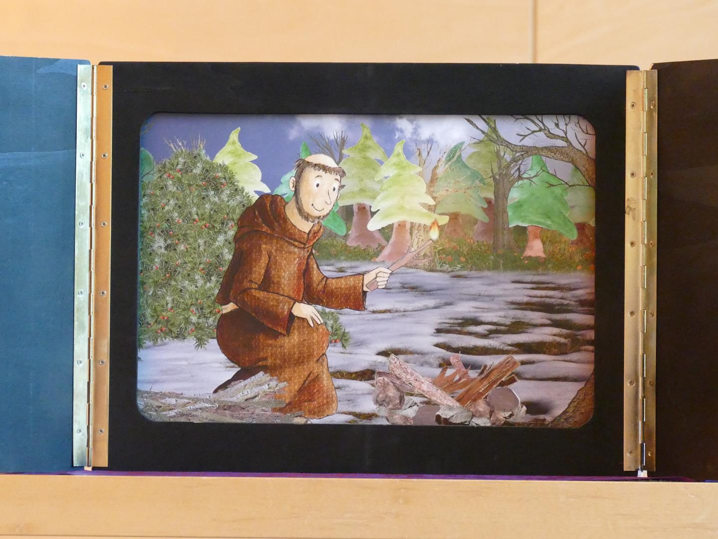 Als unsere Wortgottesdienstleiterin Dragana das vierte Fenster öffnete konnten wir einen Mönch mit einem Reh sehen. Das besondere an diesem Bild war jedoch dass beide gemeinsam auf dem Weg waren und man eine Beziehung zwischen den beiden spüren konnte. So muss es wohl unserem Kirchepatron gegangen sein als er sich auf die Ankunft Jesu vorbereitete.