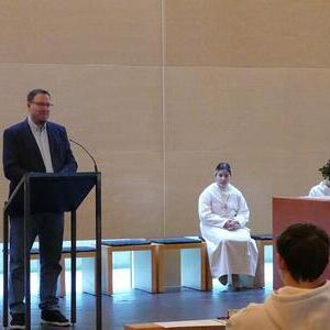 In einem vollen Haus stellten sich heute unsere Firmlinge Elena, Sophie und Sebastian vor.