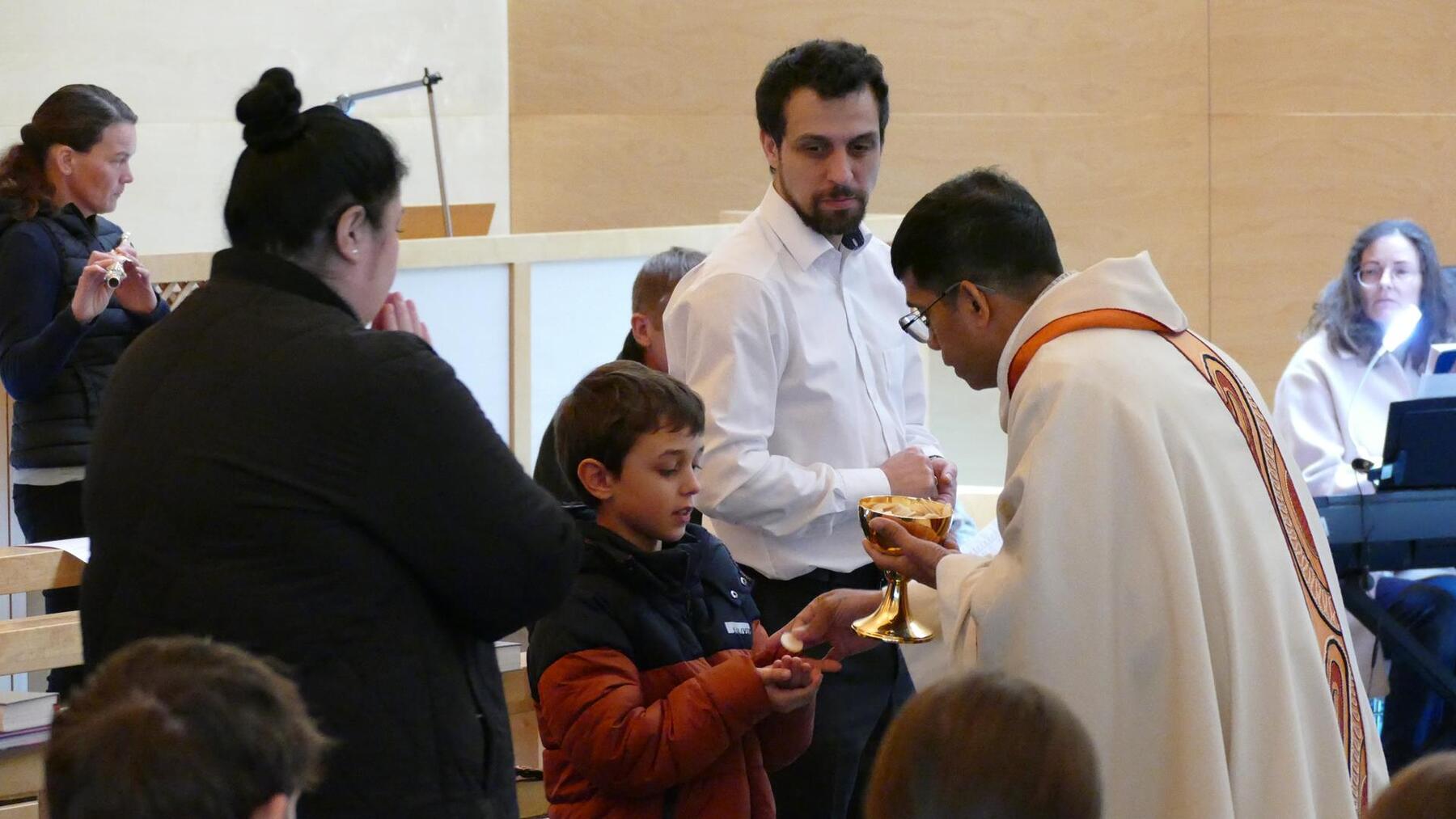 Am Ende des Gottesdienstes spendete Pater Nelson noch den Blasius Segen der vor Krankheit schützen soll.