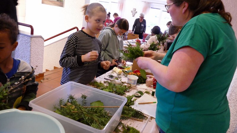 Wir freuten uns sehr, dass fast 30 Kinder unserer Einladung gefolgt sind. Es gab wieder jede Menge österlichen Bastelspaß und auch die traditionellen Briochehasen durften nicht fehlen.