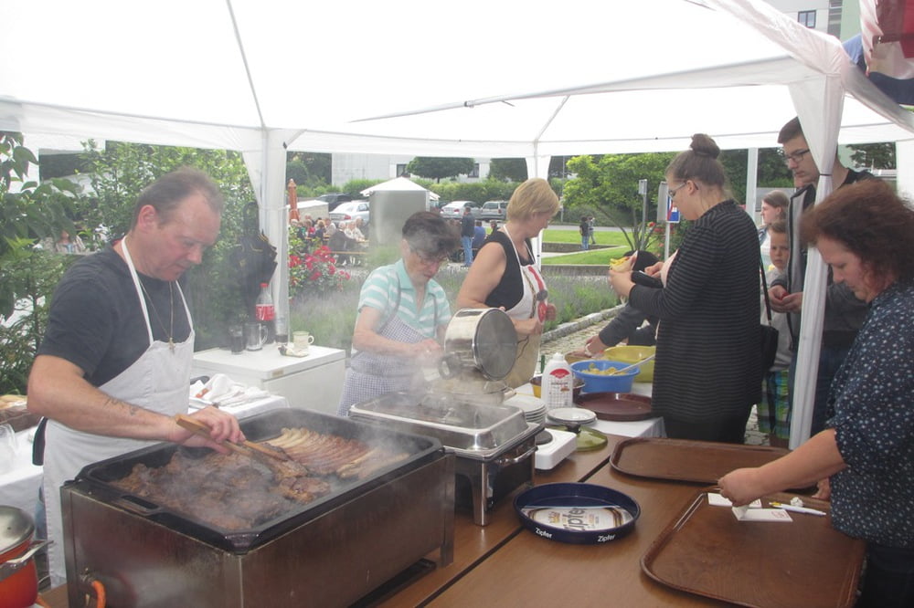 Herzlich willkommen hieß es dann zum anschließenden Pfarrfest, wo jung und alt wieder ihren Spaß hatten, Catfish-John in bewährter Manier aufspielte und herzhaft gespeist wurde. Die vielen Menschen waren ein Herz und eine Seele, und manch einer freute sich von Herzen über seinen Tombola-Preis.