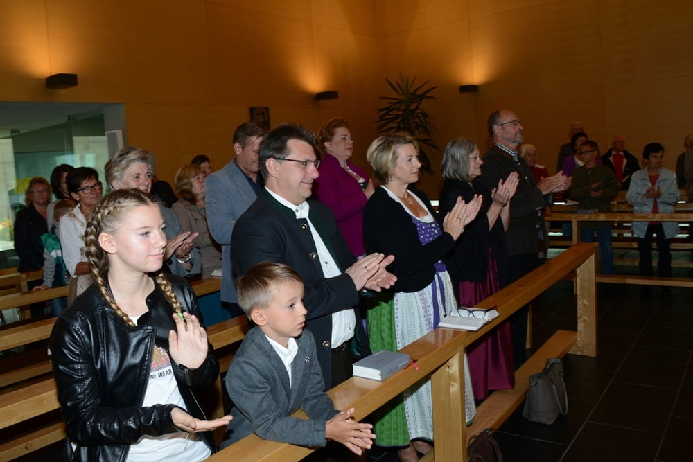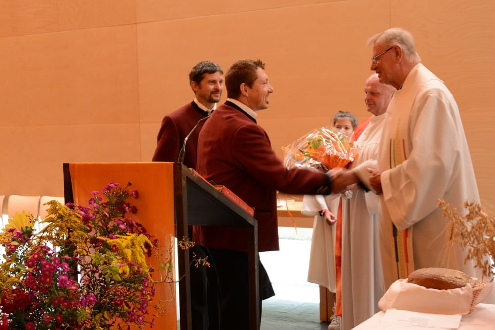 Musikalisch wurde die Feier von der Musikkapelle Sulzbach und unserem Organisten Max Schernthaner gestaltet. Am Ende der Messe wurde Pater Essl zu seinem 75. Geburtstag gratuliert. Nach dem Gottesdienst lud unser Pfarrer die Kirchenbesucher auf köstliche Münchner Weißwürste ein. Ein herzlicher Dank gilt auch Frau Poldi Brunmair für das Binden der Erntekrone und Frau Rosi Zebenholzer für den ansprechend gestalteten Blumenschmuck.