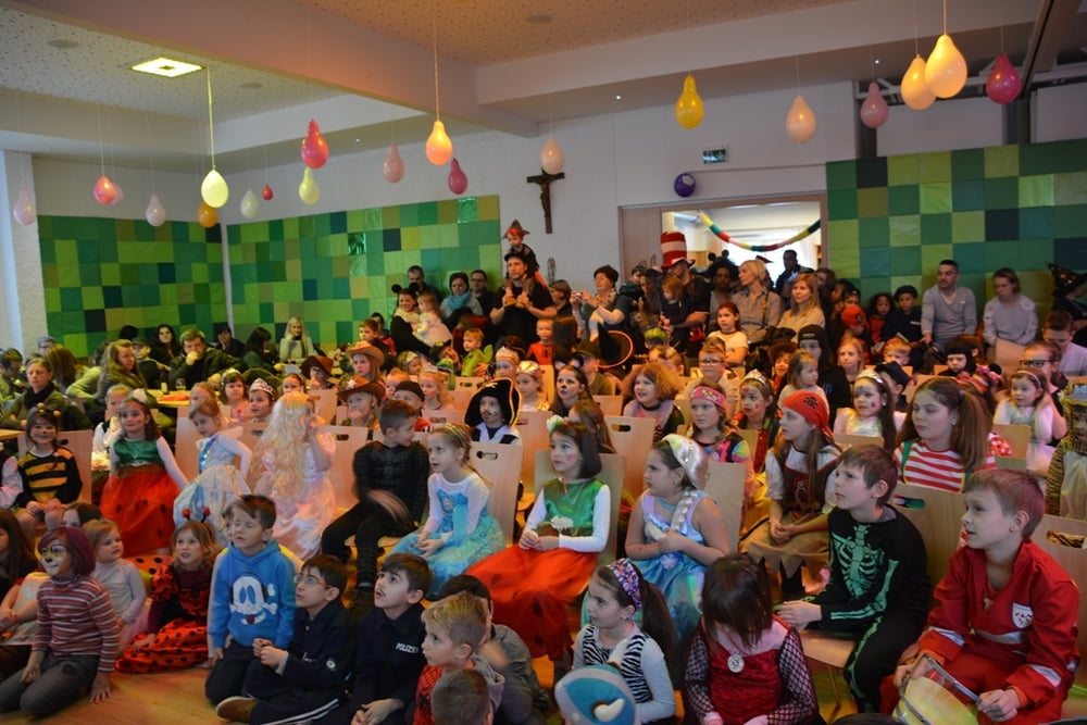 Der Kasperl wurde mit Spannung erwartet. Die Kinder hatten in ihren fantasievollen und lustigen Kostümen richtig Spaß an den Tänzen und Spielen, vom Vogerltanz bis zum Elefantenlauf. Gedränge gab es beim "Fischen" genauso wie beim luftigen Schwungtuch. Zum Schluss hatten sich alle einen Krapfen verdient. Der Kasperl lädt jetzt schon fürs nächste Jahr ein!