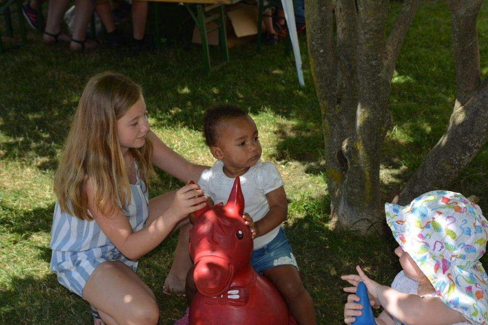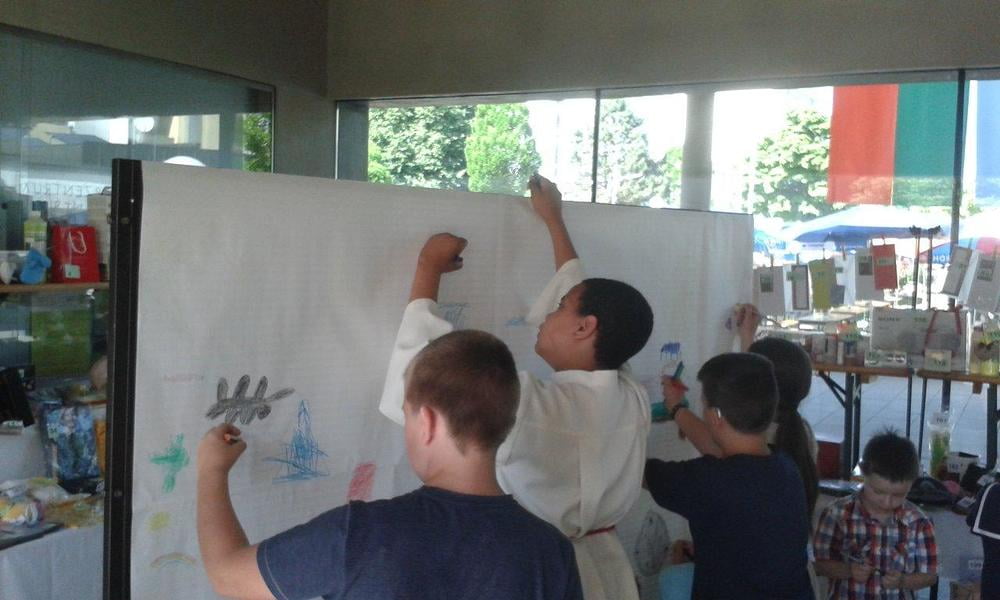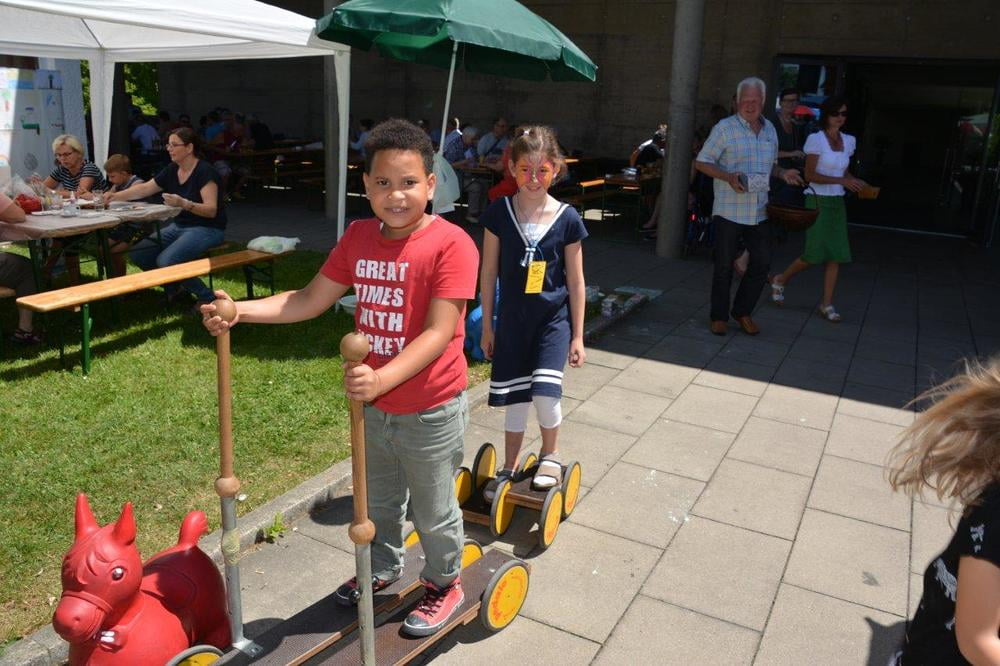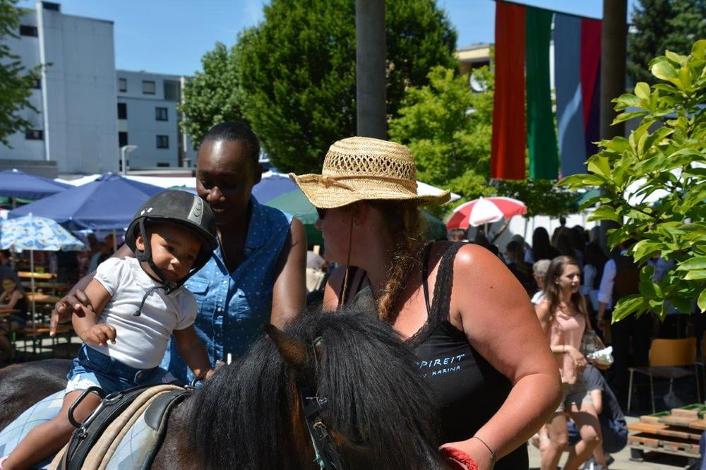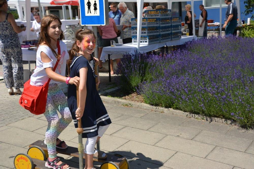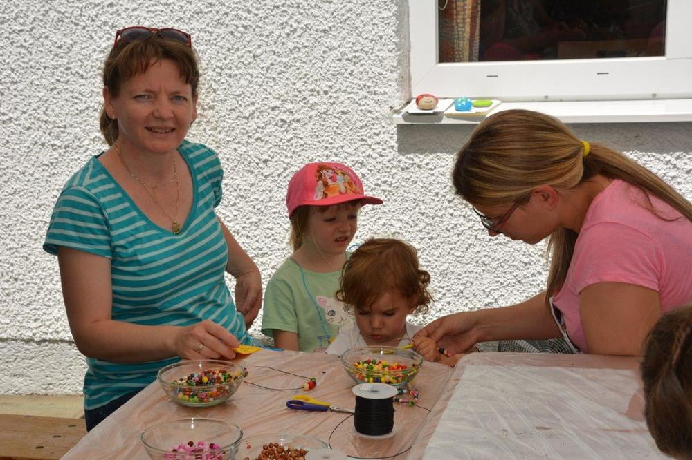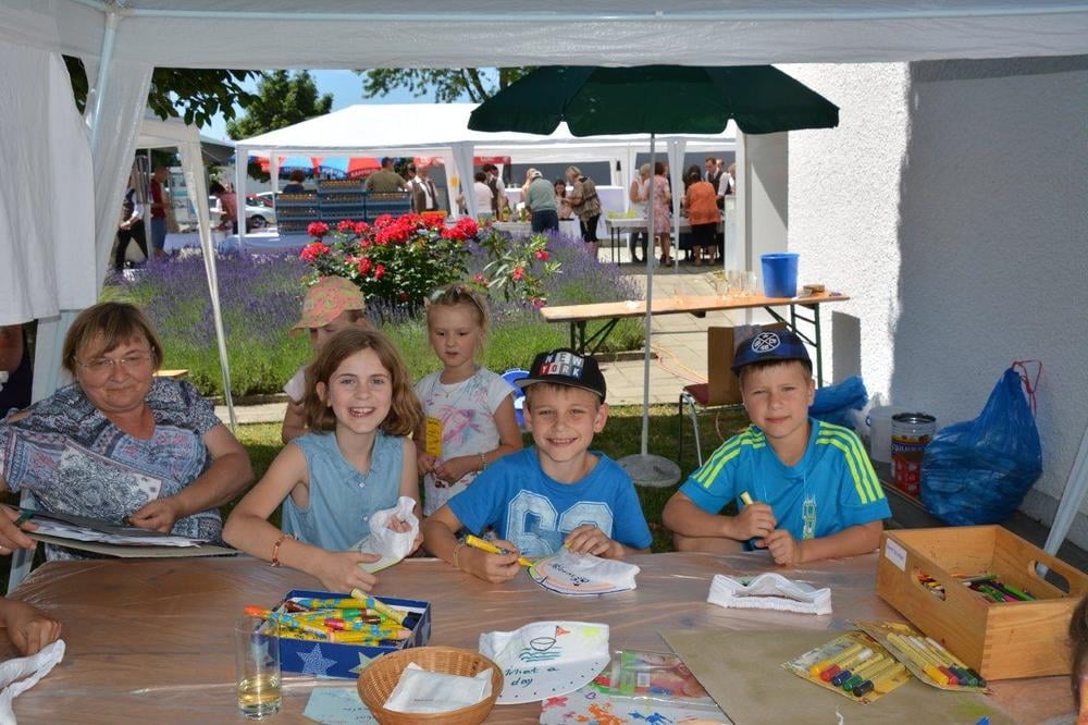Auch für die Unterhaltung unserer kleinen Gäste wurde gesorgt. So wurden Steinfiguren und Armbänder gebastelt, Taschen und T-Shirts bemalt, Lesezeichen gestaltet, künstlerisch geschminkt und Papierflieger gefaltet, die in einer stündlichen "Challenge" um die Wette flogen. Ein Zauberkünstler und das Ponyreiten rundeten das Kinderprogramm ab.