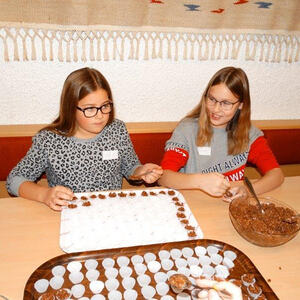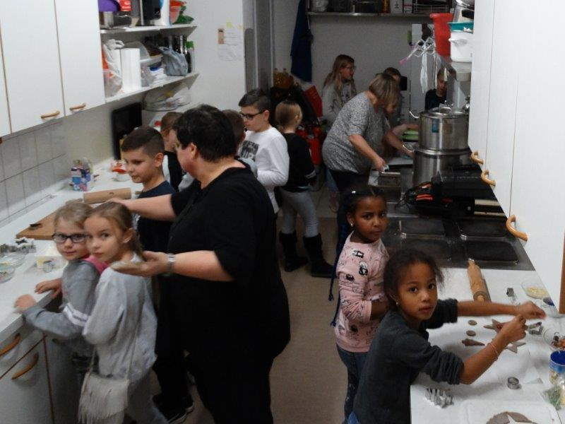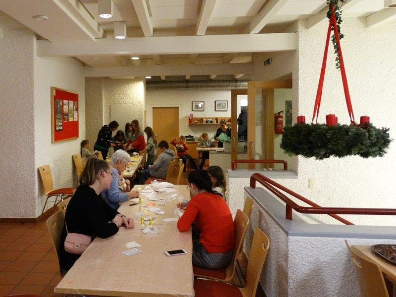 Es fanden sich 30 Kinder ein, welche vom "Kinderteam" unter der Leitung von Regina und Irene betreut wurden. Mit viel Eifer wurden Sterne, Holzkerzen und Papierengel gebastelt, sowie Lebkuchen gebacken.