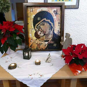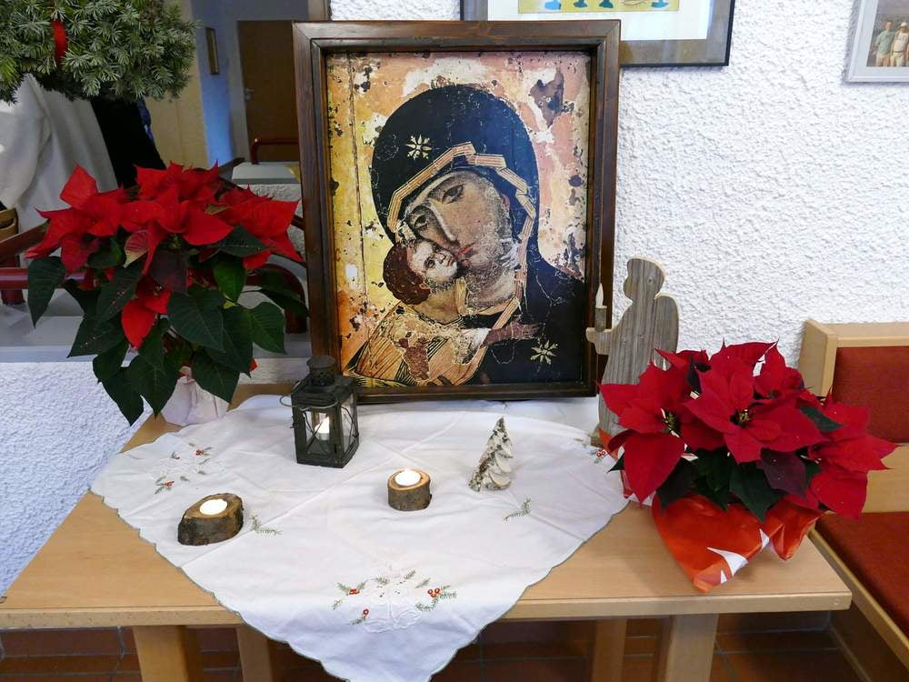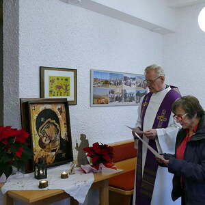 In einer kleinen Prozession wurde unsere Marienikone in das Pfarrzentrum getragen, nach den Fürbitten und dem Lied “Der Engel des Herrn“ ging es zum gemütlichen Teil über.