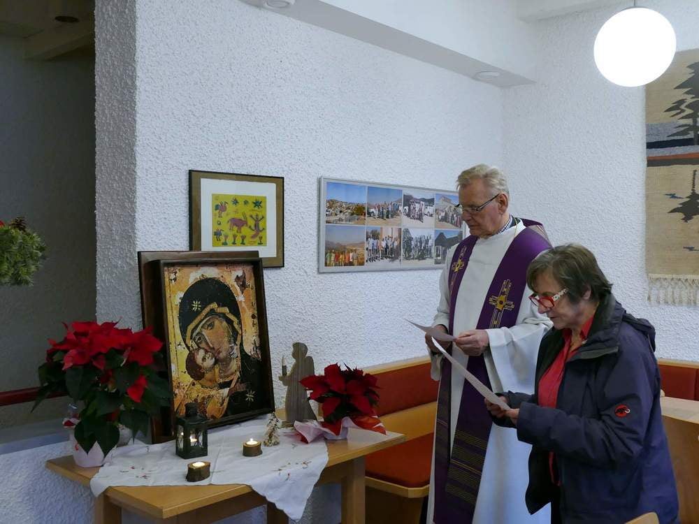 Die Adventsandacht in der Kapelle wurde von P. Josef Essl gestaltet, Renate Handler zitierte das bekannte Gedicht “Worüber das Christkind lächeln musste“ von Karl Heinrich Waggerl.