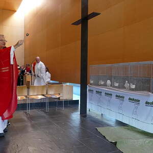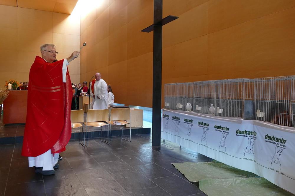 Da ja unser Kirchenpatron der heilige Franz von Assisi ein großer Tierfreund war, durften auch bei uns die Tiere mit zur Messe kommen. Wie auch die vergangenen Jahre feierte der Kleintierzuchtverband mit seinen Hasen und Tauben mit. Drei Schildkröten und ein Hamster wurden auch in der Messe gesehen. Unser Chor hat in der Sommerpause nichts verlernt und gestaltete die Messe musikalisch. Die Lichterprozession zum Assisi-Stein war auch heuer wieder ein sehr feierlicher und meditativer Teil. Unser Küchenteam bereitete dann im Pfarrheim ein gschmackiges Tellerfleisch zum Mittagessen und so konnten wir den Tag gemütlich ausklingen lassen.
