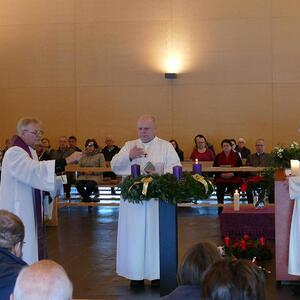 Die Adventkränze wurden geweiht und musikalisch wurde der Gottesdienst von Max Schernthaner auf der Orgel und von Fridolin Hikade auf der Panflöte sehr stimmungsvoll begleitet.