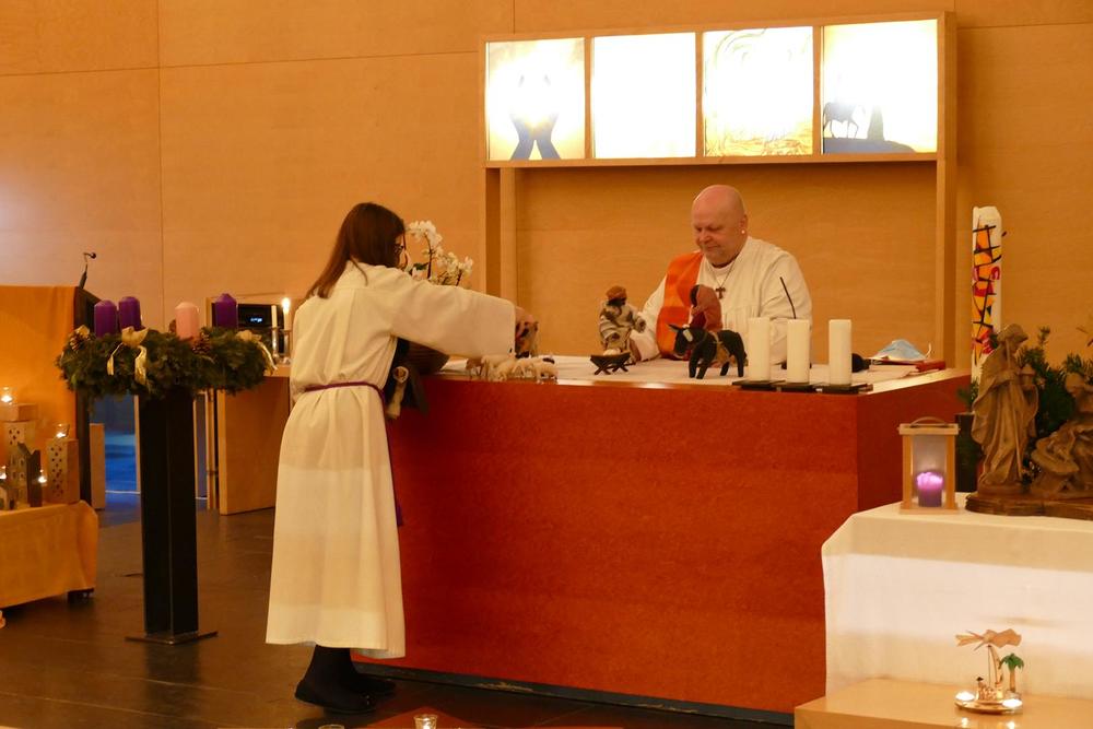 Gerhard Bögl stellte mit Krippenfiguren das Weihnachtsevangelium nach und die Kinder machten eine Friedenslichtprozession durch die Kirche. Im Handumdrehen war die Mette auf schon wieder vorbei und das Warten aufs Christkind auch schon zu Ende.