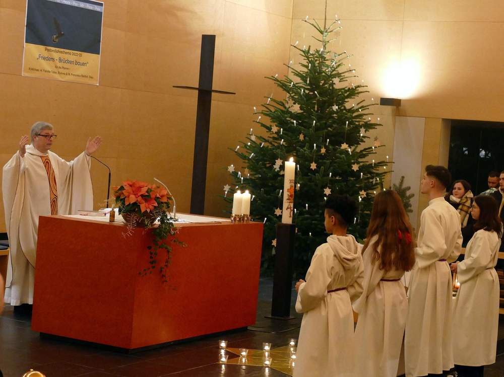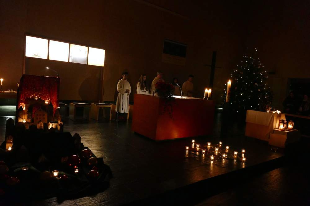 Unserem pastoralen Jahresthema "Friedensbrücken bauen" entsprechend, machten wir uns in diesem Gottesdienst mit besinnlichen Texten und Zeichen-Handlungen auf die Suche, wie wir in der Geburt Jesu Christi den Frieden auf Erden und unseren eigenen Seelenfrieden wiederfinden können.