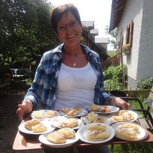 Die Wallfahrer freuten sich natürlich auch auf die Gschwendtalm, wo sie Jause, Kaffee und Kuchen genossen. Mit Plaudern, Singen und einem guten Glas Wein ließen wir den Nachmittag ausklingen.