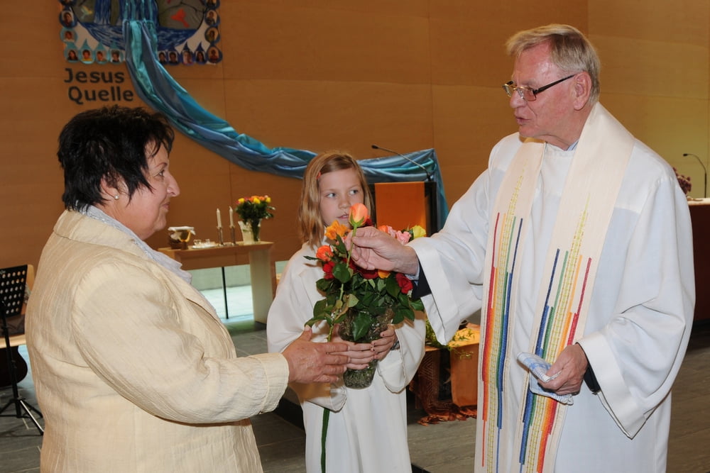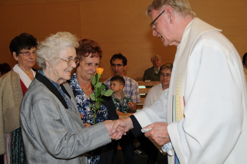 Am Ende des Gottesdienstes spielten Christina, Valentina und Laura zu Ehren der Mütter zwei Lieder und trugen ein Gedicht vor. Pater Essl und Hans Holzer überreichten anschließend Rosen an die anwesenden Mütter.