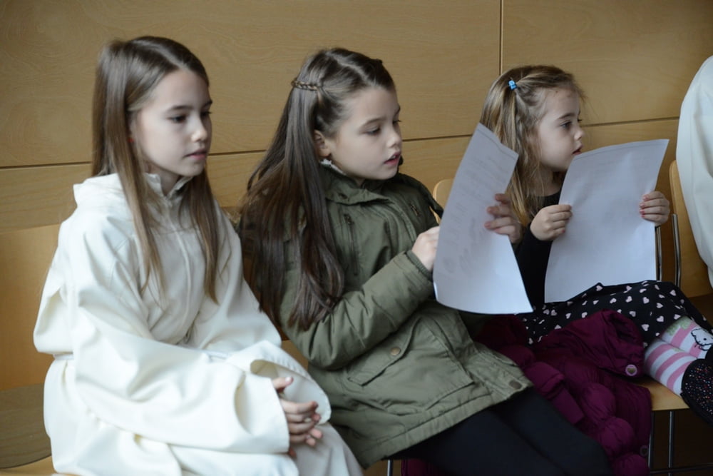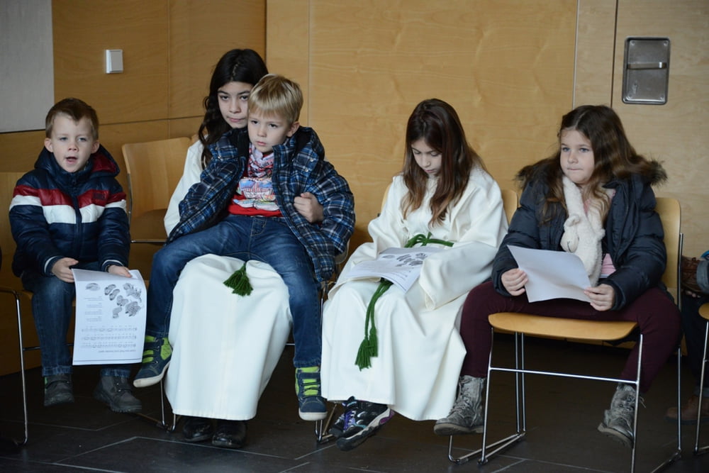 er las den Kindern eine Geschichte vor, sang und unterhielt sich eine Weile mit ihnen. Ein Mädchen war so mutig ihm ein Gedicht vorzutragen. Am Ende des Gottesdienstes, dessen Motto "mit dem Blick der Barmherzigkeit" war, verteilte er noch Mandarinen an alle Gottesdienstbesucher.