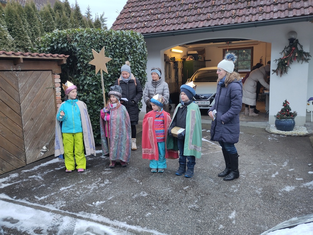 Mit großer Freude waren unsere Sternsinger begleitet von einigen Chormitgliedern unterwegs. Bei mehreren Familien im Pfarrgebiet kamen auch die Nachbarn zusammen, um die Dreikönigsaktion zu unterstützen.