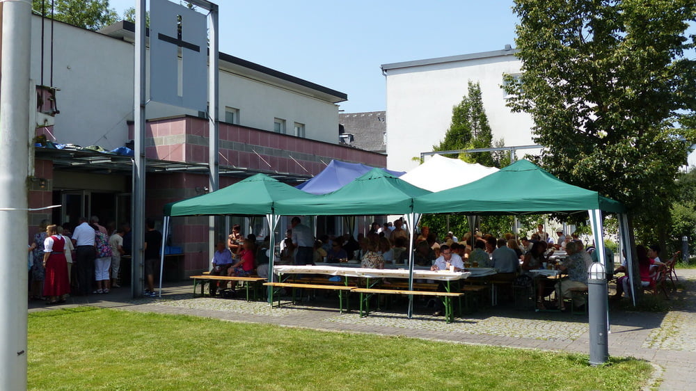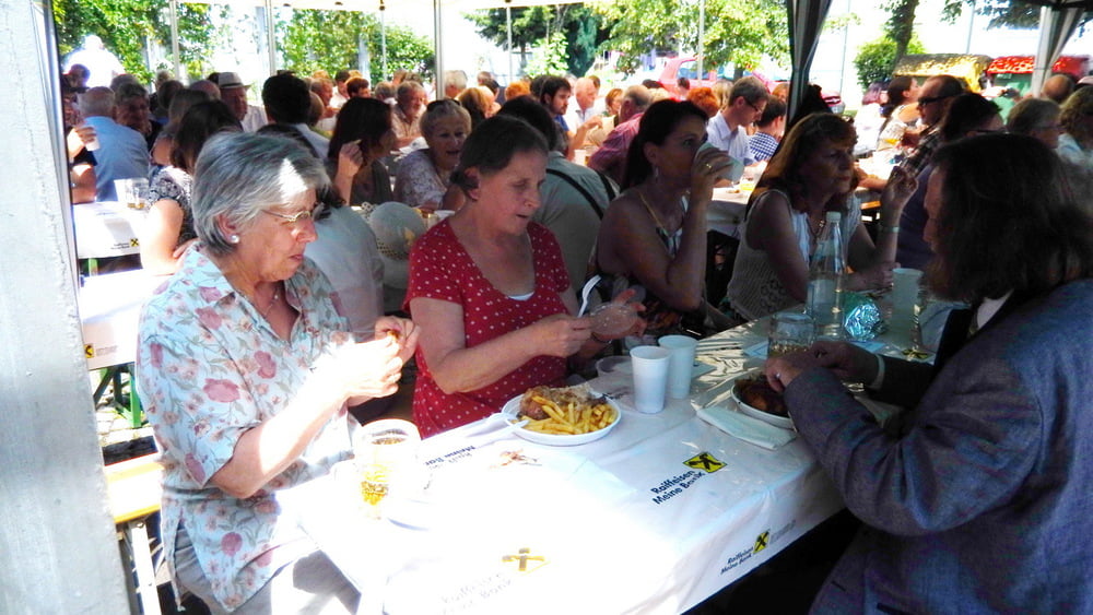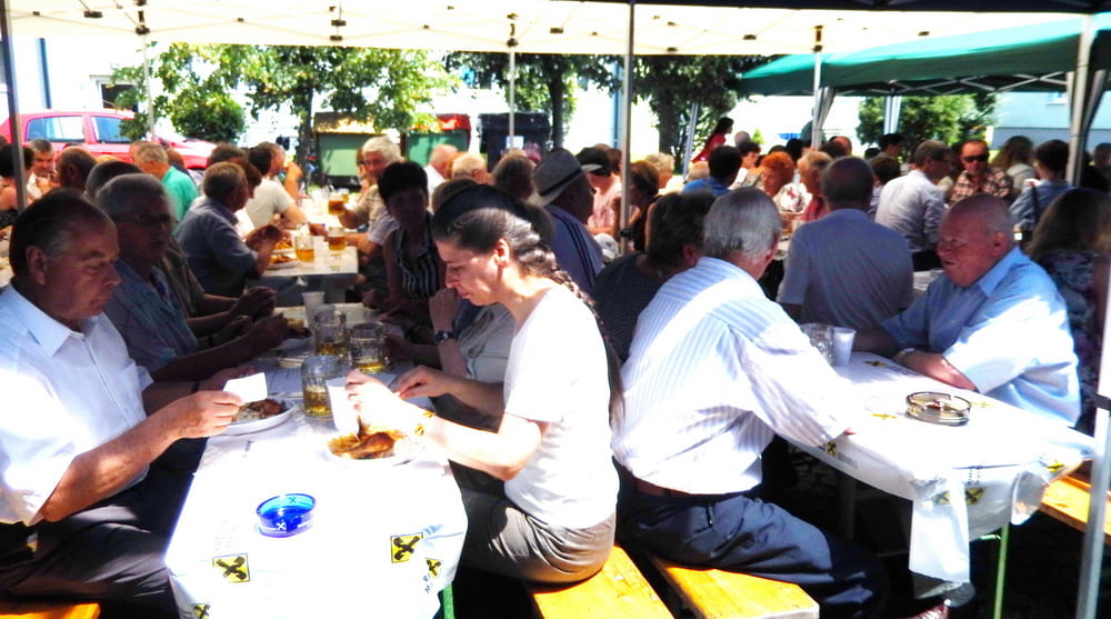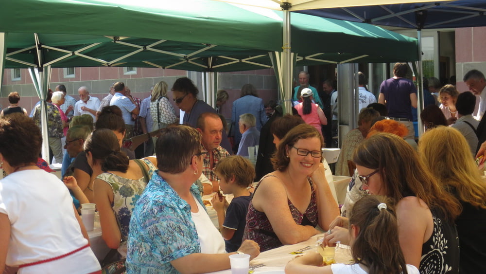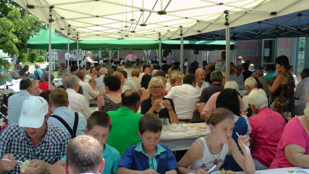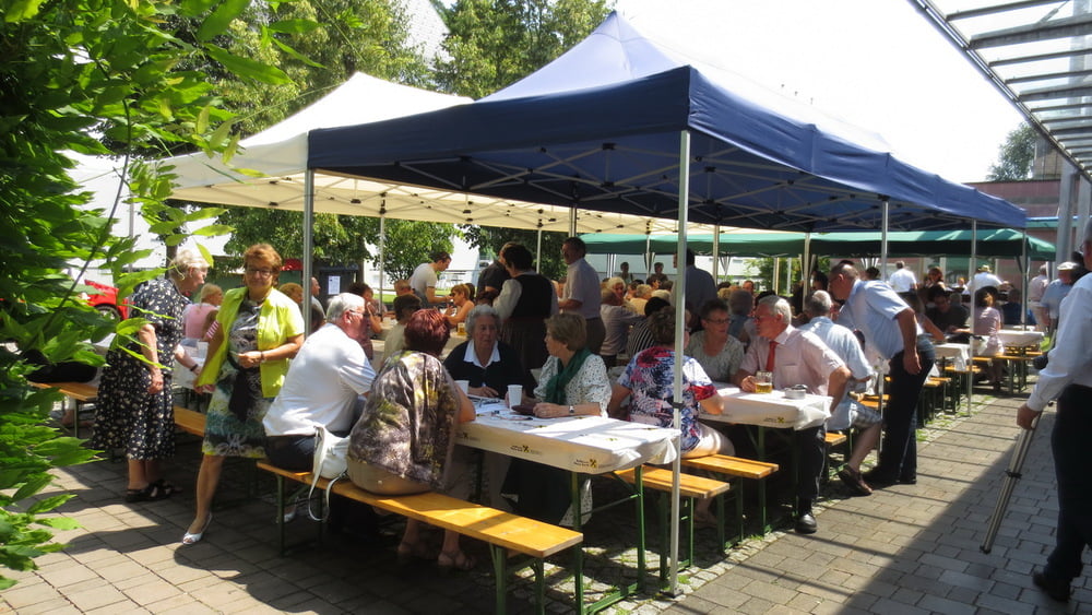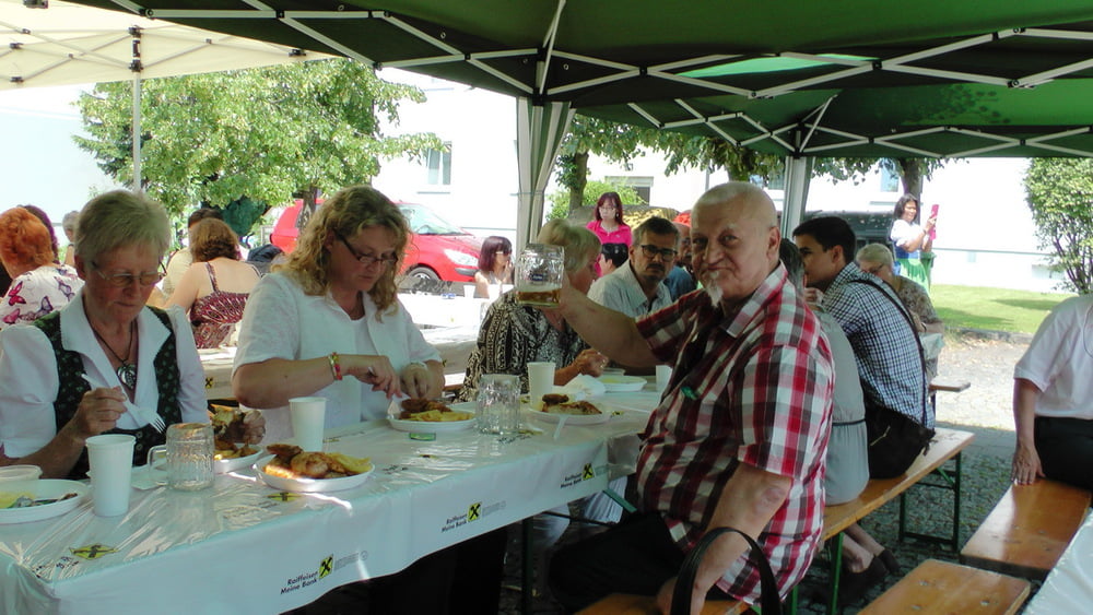 Im Anschluss an den feierlichen Gottesdienst wurde die Jubiläumsfeier am Kirchenplatz bei herrlichem Wetter fortgesetzt, wobei die Werkskapelle Steyrermühl für eine exzellente musikalische Umrahmung sorgte.