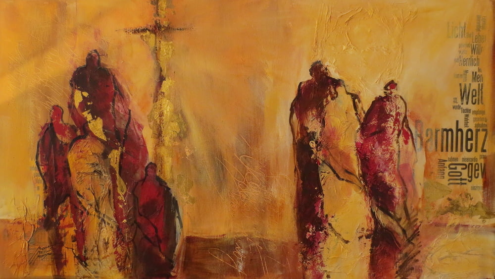 Der Leiter des Bildungszentrums Maximilianhaus, Willi Seufer-Wasserthal, führte durch die Ausstellung "barmHerzig" - einem Kunstobjekt im Rahmen des Jahres der Barmherzigkeit.