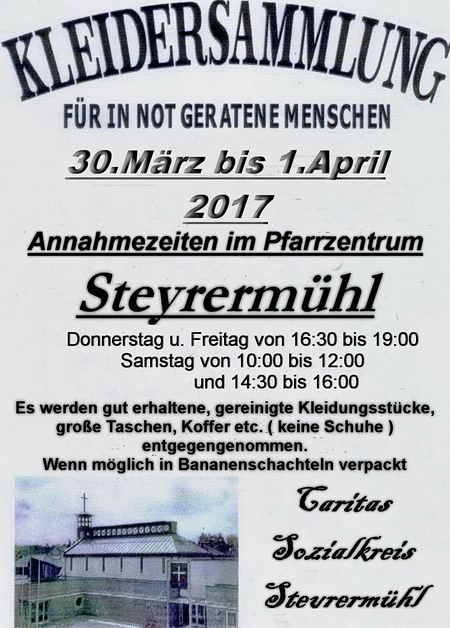 Auch heuer findet wieder eine Kleidersammlung statt. Nähere Informationen dazu unter "Bilder".